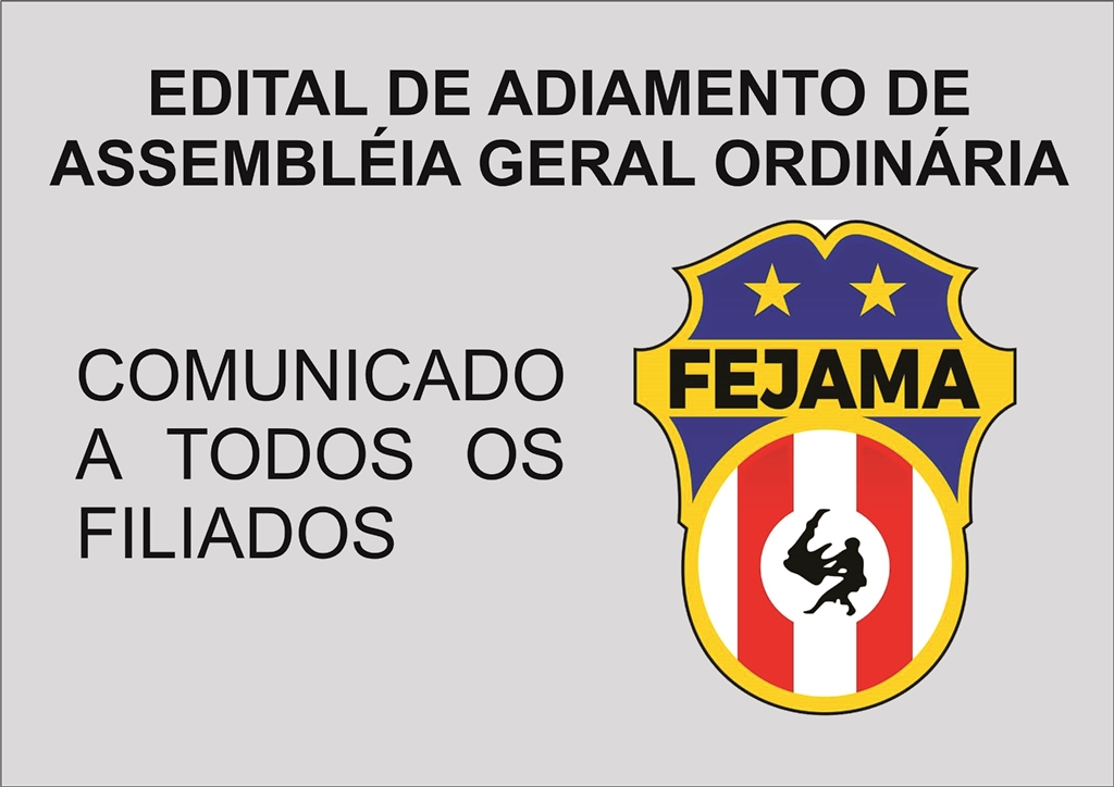 O presidente da Federação de Judô do Amazonas, no uso de suas atribuições estatuárias, ante a situação atual de saúde (Epidemia do COVID-19), a CIRCULAR 03/2020 da CBJ e a impossibilidade de reunião virtual, adiar a Assembleia Geral Ordinária marcada para o dia 21/03/2020. Nova data de assembleia será divulgada, assim que superada a medida preventiva emergencial, seguindo o fundamento constitucional da dignidade da pessoa humana (Artig. 1, III, da CF/88), preservando, em especial a comunidade do Judô. Na busca pela transparência, desde já, fica a disposição das Filiadas o relatório de atividades administrativas e desportivas, assim como a Prestação de Contas.